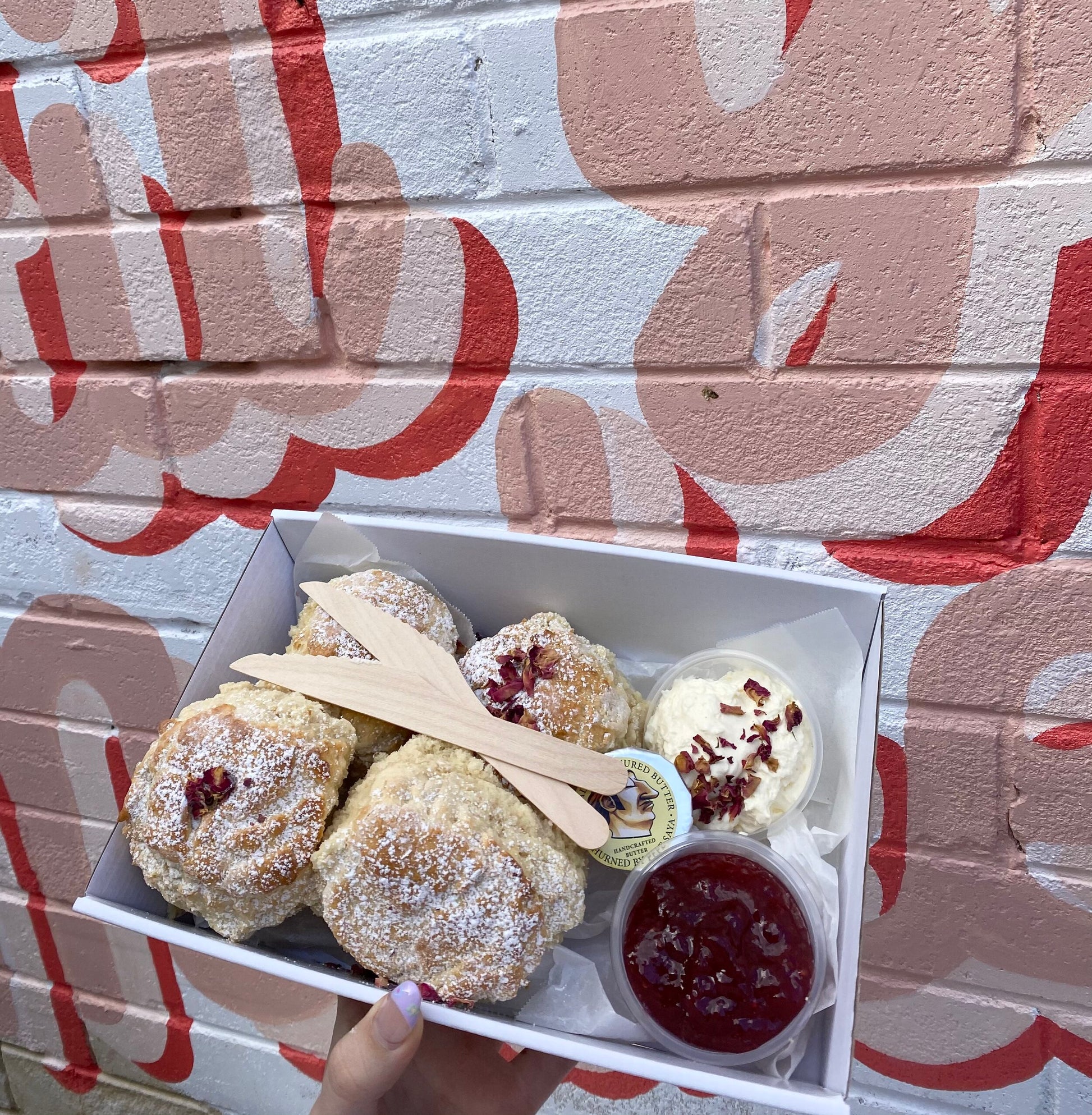 Each batch is baked fresh daily, boxed cute, and ready to impress. Grab a box for yourself or share the love with a friend – these scones are the perfect little something to brighten anyone's day
